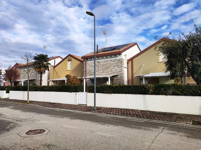 Nei pressi di piazza Milano, una delle più tranquille e servite zone di Jesolo Lido, e lontano appena 450mt dalla spiaggia, proponiamo ottima soluzione sia per le vacanze sia per l'esigenza residenziale. La struttura è inserita in un contesto molto curato di 10 abitazioni a schiera, tutte totalmente indipendenti nel rispetto della privacy. Il complesso residenziale dispone di una piscina centrale con acqua riscaldata e manutentata giornalmente nel periodo estivo. L'abitazione si sviluppa su due piani: al piano terra, accessibile senza nessun gradino, si trovano salotto con vetrate, angolo cottura su misura, servizio finestrato con doccia e ripostiglio. Gli spazi esterni di proprietà si trovano su due diversi lati della casa, uno dei quali conta di un piccolo patio. Il piano superiore, impreziosito da un bellissimo tetto a travi bianche, si conforma da 2 camere matrimoniali con armadiatura a scomparsa. Secondo bagno con velux e doccia. I velux esistenti sono motorizzati sia per l'apertura/chiusura, sia per l'oscuramento. Il corridoio è dotato di ulteriori armadi su misura. Completa l'offerta un doppio box auto nell'autorimessa condominiale sotterranea. Un ulteriore parcheggio esterno si trova fronte ingresso. L'arredamento dell'immobile, compreso nel prezzo, è di qualità superiore. Perfetta soluzione per avere tutti i comfort a portata di mano godendo di una zona molto tranquilla.